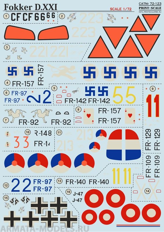 PS72-123 Декаль Fokker D.XXI Print Scale в Чебоксарах, купить в интернет-магазине, цены, фото