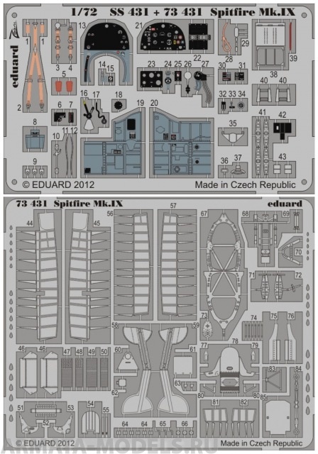 73431 Фототравление Spitfire Mk.IX For Italeri kit EDUARD в Чебоксарах, купить в интернет-магазине, цены, фото