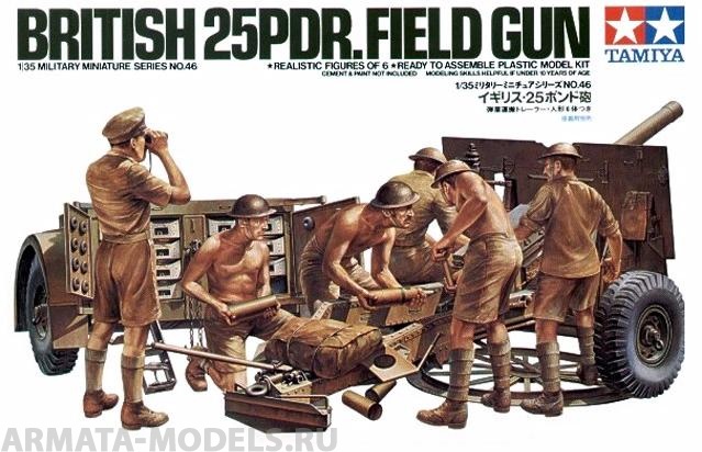 Сборная модель из пластика. Английская 25-фунтовая пушка с расчетом из 6 человек и артиллерийским прицепом.